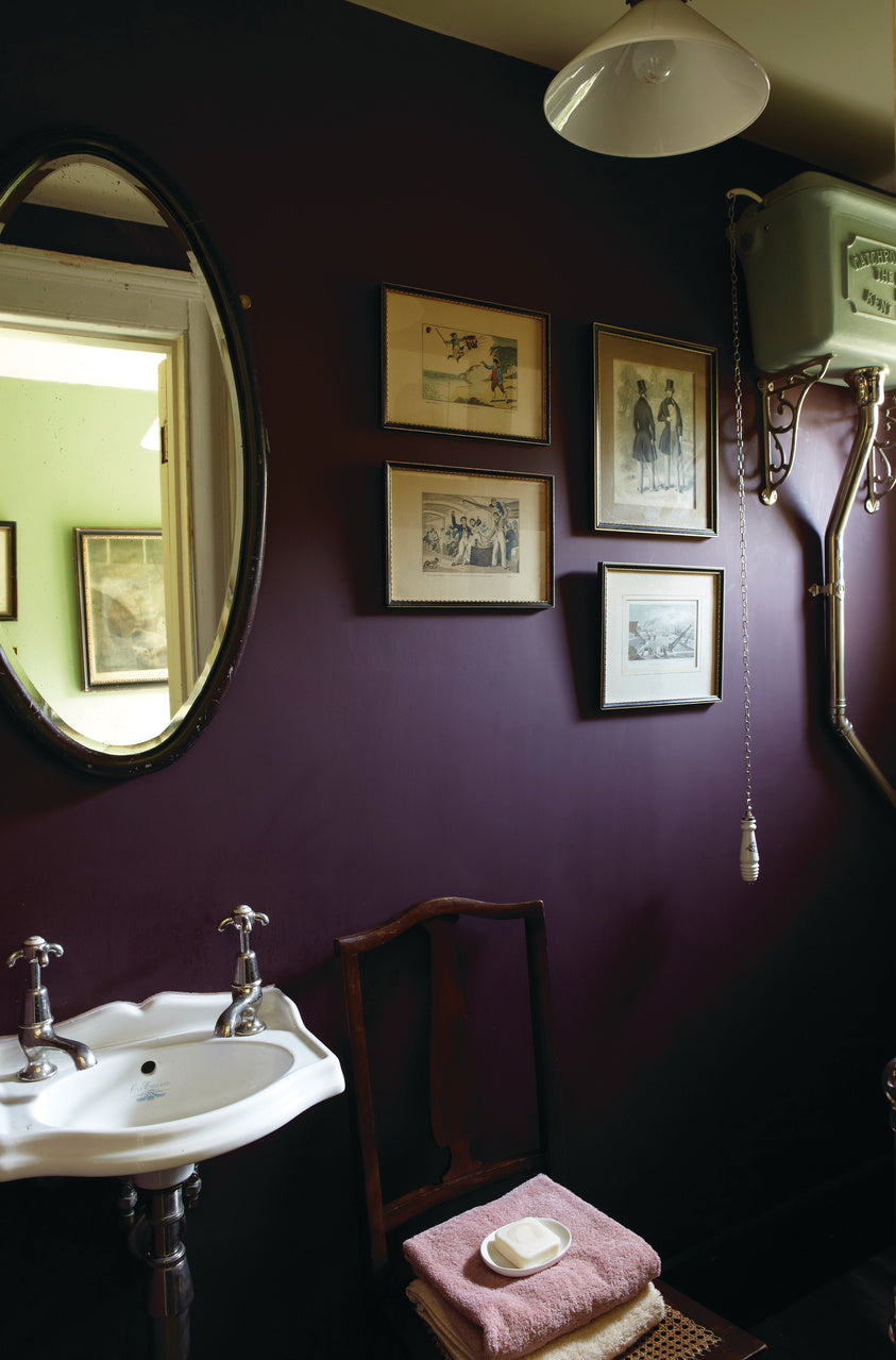 Brinjal is a rich, deep purple inspired by the glossy skin of an aubergine. It looks striking on woodwork in Farrow & Ball's Full Gloss finish, or as a sophisticated feature wall colour alongside pale grey Skimming Stone.