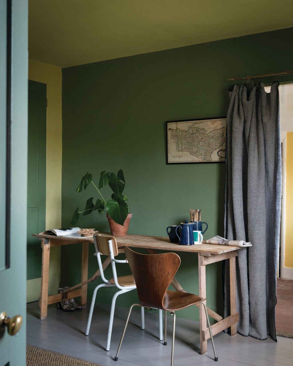 Calke Green is named after Calke Abbey, the country house in Derbyshire where an aged version of this rich green colour was originally found. As a wall colour, it works particularly well with Old White on ceilings and woodwork.