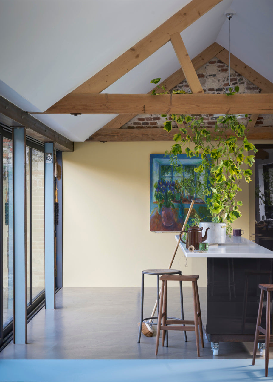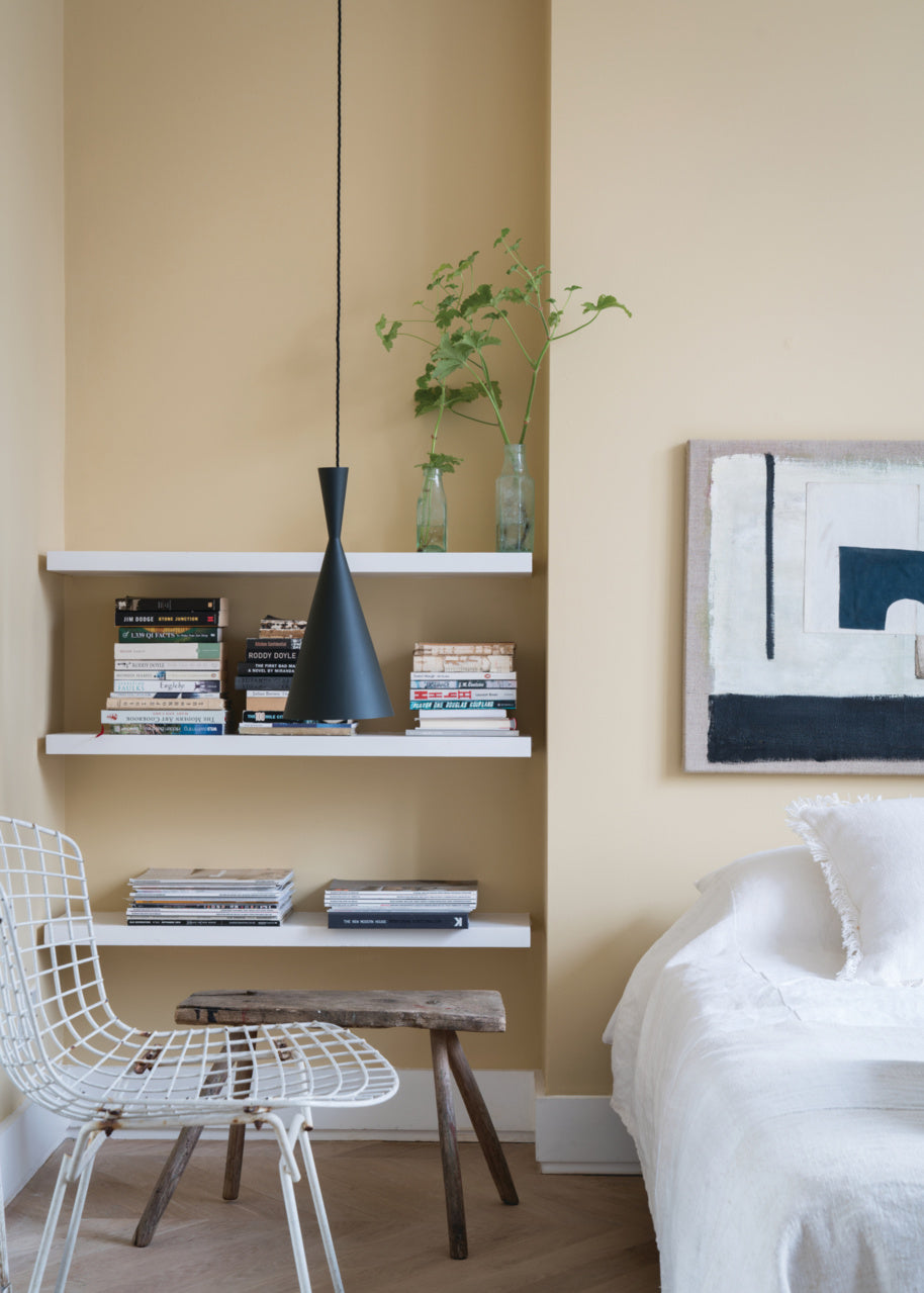 Hay is a warm and dusty yellow with a distinct green undertone, evoking the freshness of the crop from which it takes its name. It's less intensely coloured than the sunny Yellow Ground, and therefore easier to use for those who love yellow but are nervous of strong wall colours.